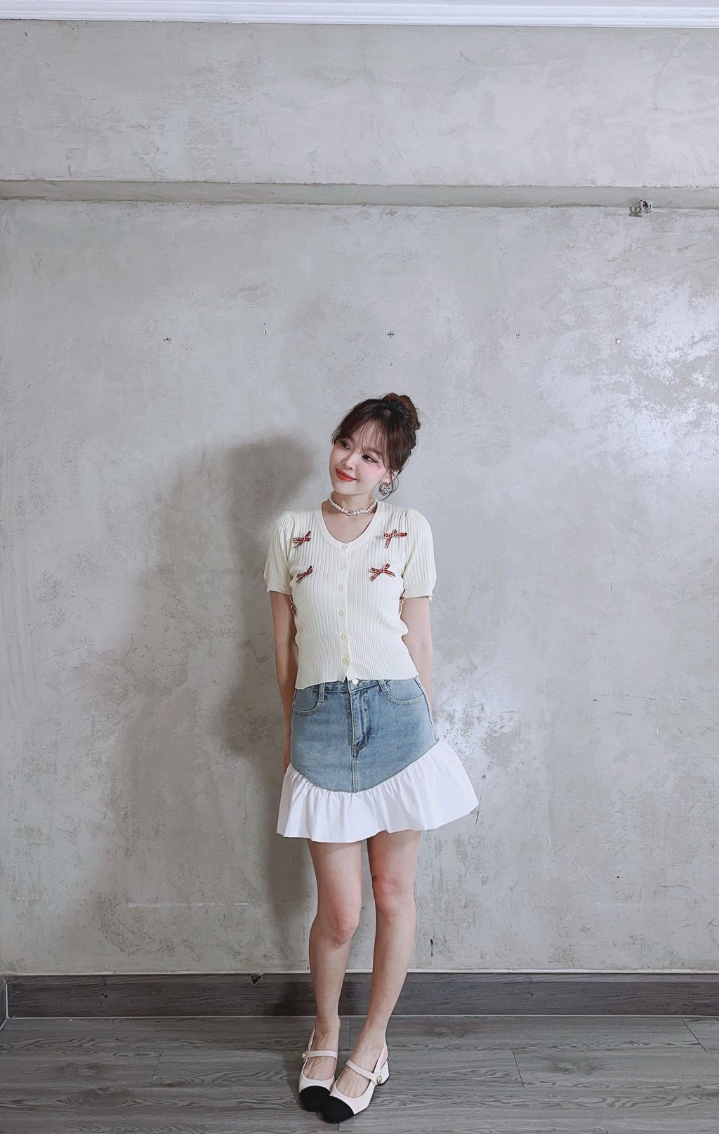 TH2919 少女俏皮感牛仔拼接泡泡花苞高腰裙【修身A字版型】